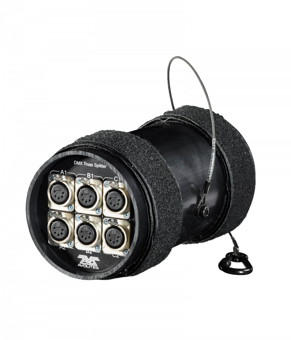 標(biāo)準(zhǔn) XLR5 接口 (可選配 XLR3 接口);圓柱形設(shè)計(jì)帶魔術(shù)帶以及鋼絲安全繩,適應(yīng)于 Truss 安裝;