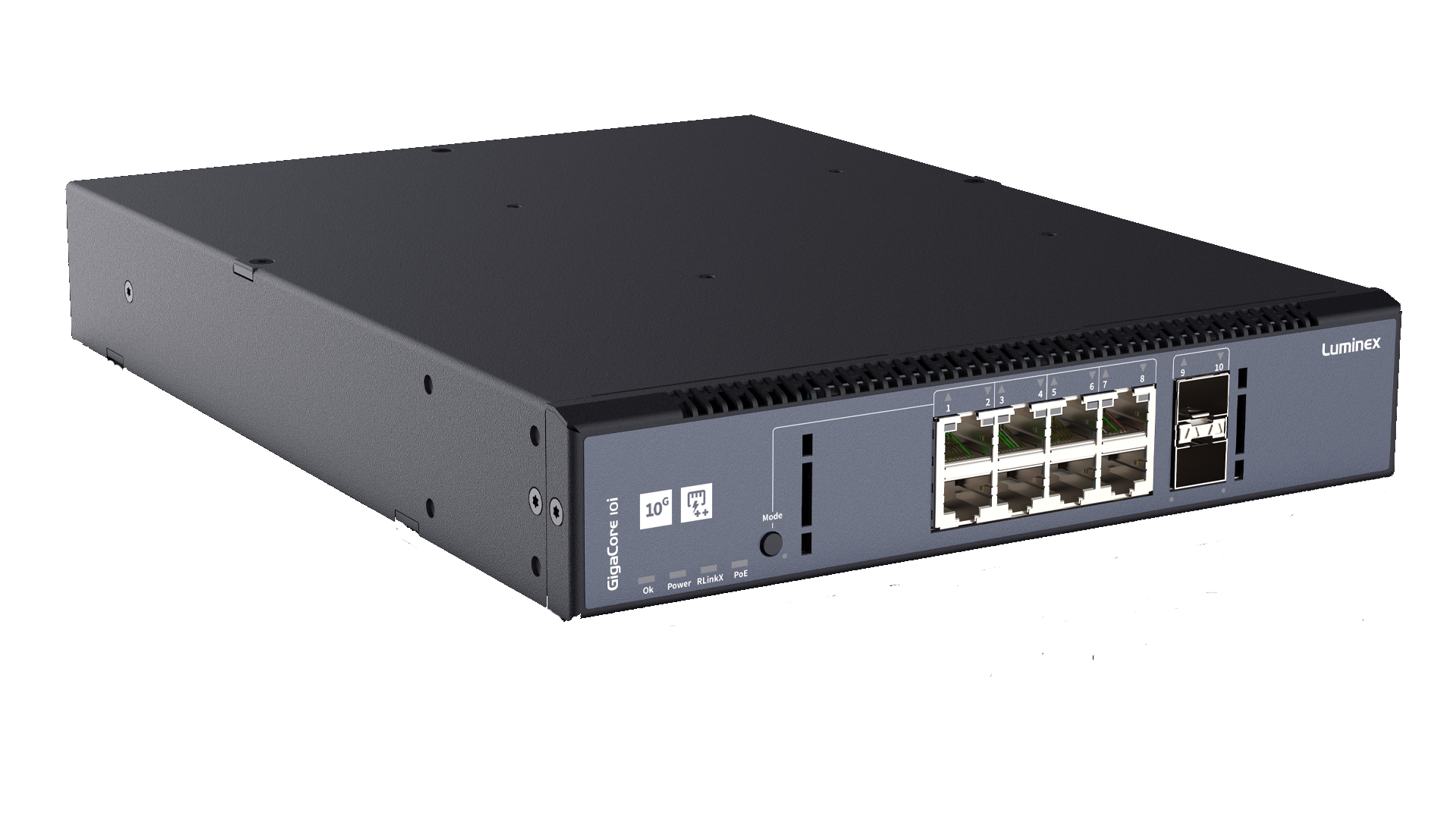GigaCore 10i 是一款10Gb 以太網(wǎng)交換機,采用1/2 19“封裝,專用于對可用空間和安裝有特定要求的視音頻集成和安裝。它旨在支持最先進的開箱即用的 AV 協(xié)議,是融合網(wǎng)絡(luò)的骨干,允許多個應(yīng)用程序在同一網(wǎng)絡(luò)上共存。