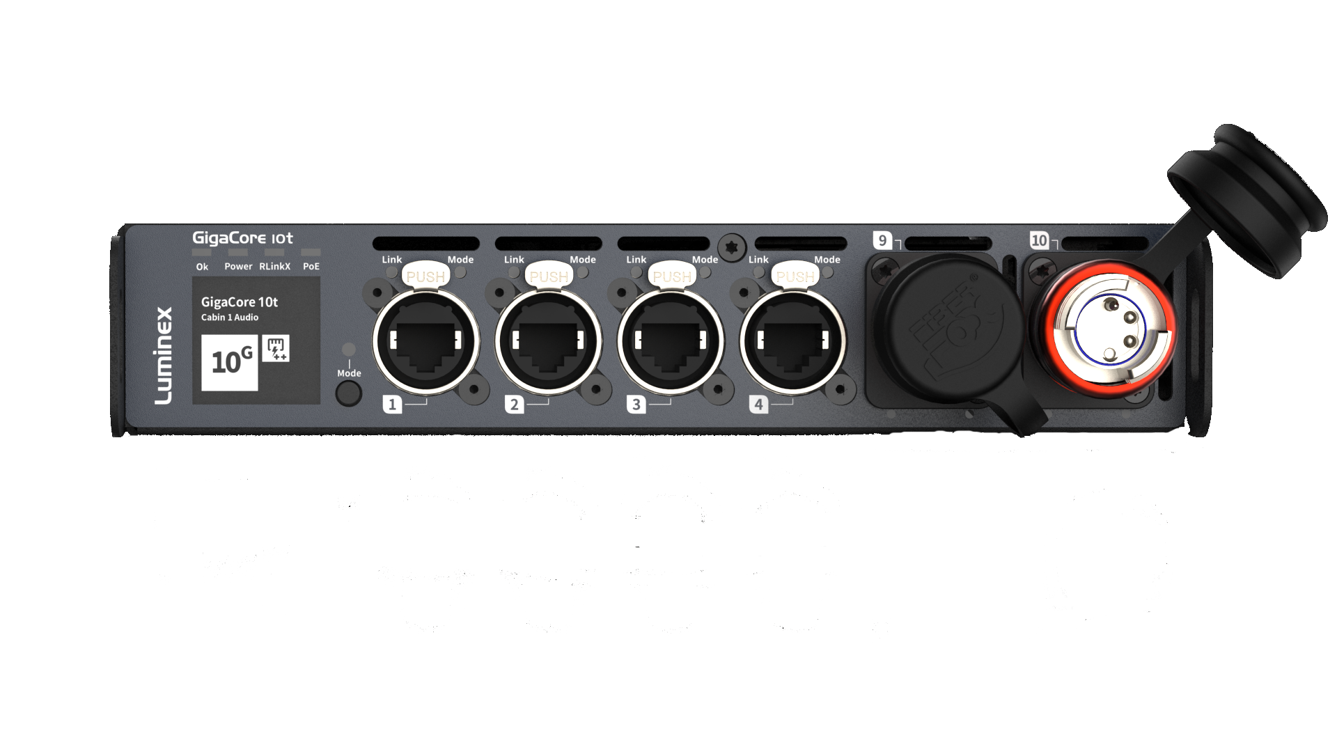 GigaCore 10t 是一款10 Gb 以太網(wǎng)交換機,適用于照明、音頻和視頻領域的專業(yè)巡演應用,需要頻繁拆卸和組裝,或用于需要加固連接的任何其他應用。它旨在支持最先進的開箱即用的 AV 協(xié)議,是融合網(wǎng)絡的骨干,允許多個應用程序在同一網(wǎng)絡上共存。