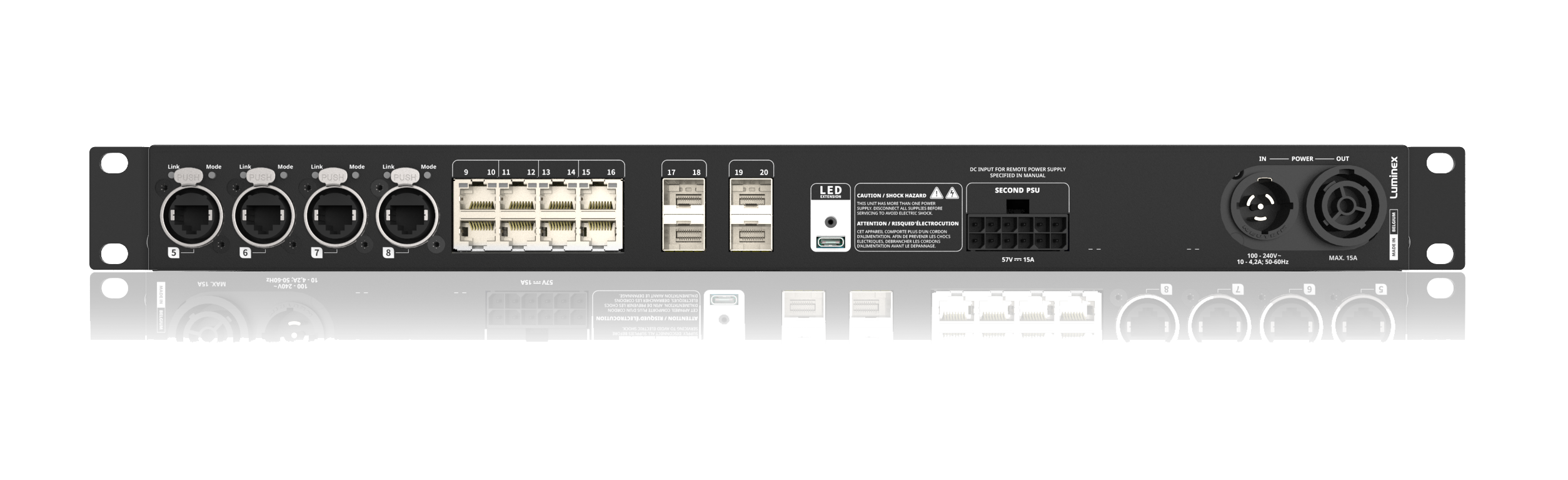 支持的協(xié)議: Dante©, RAVENNA/AES67©, Ethersound©, Q-SYS/Q-LAN, sACN, ArtNet, MANet, HogNet, RTTrPL (BlackTraX), IPMX, NDI, IEEE 802.1p CoS (Class of Service), DiffServ (DSCP), PoE (802.3af) (optional), PoE+ (optional), PoE++ (802.3bt) (optional), IEEE 1588 PTP V2, AVB/MILAN, IEEE 802.1as (gPTP)