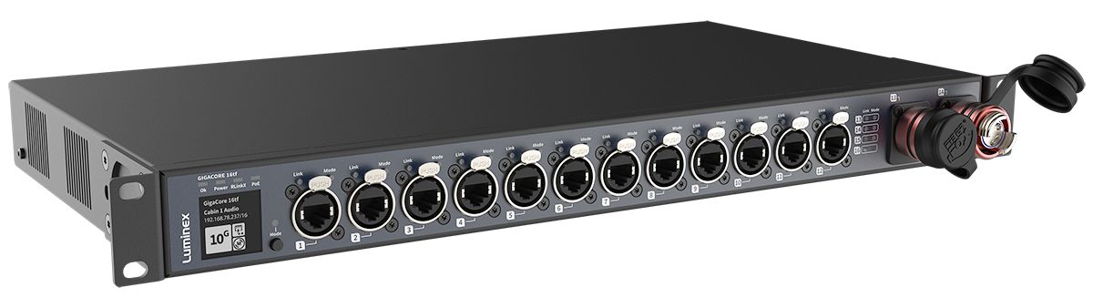 GigaCore 16tf 是 Luminex GigaCore 系列中的一款智能光纖交換機,用于演藝文娛行業(yè)的AV 系統(tǒng)集成、安裝和巡演。憑借其10Gb 連接,GigaCore 16tf允許燈光照明控制、音頻、內(nèi)通和視頻控制信號的完全網(wǎng)絡(luò)融合,還提供一系列 1Gb 版本,具有相同的 PoE 和冗余功能。 出廠預(yù)配置的QoS、 IGMP 和 PTPv2 設(shè)置將為 Dante?、AES67、Q-SYS 等要求最苛刻的時間關(guān)鍵型音頻協(xié)議提供響應(yīng)迅速且極其穩(wěn)定的網(wǎng)絡(luò)連接環(huán)境。最高支持 POE++標準,可全方位驅(qū)動任何專業(yè)的 POE 設(shè)備,如云臺攝像機、大功率揚聲器等,設(shè)備已做完備的出廠設(shè)置,無需用戶掌握任何復(fù)雜的 IT 技能即可開箱即插即用。